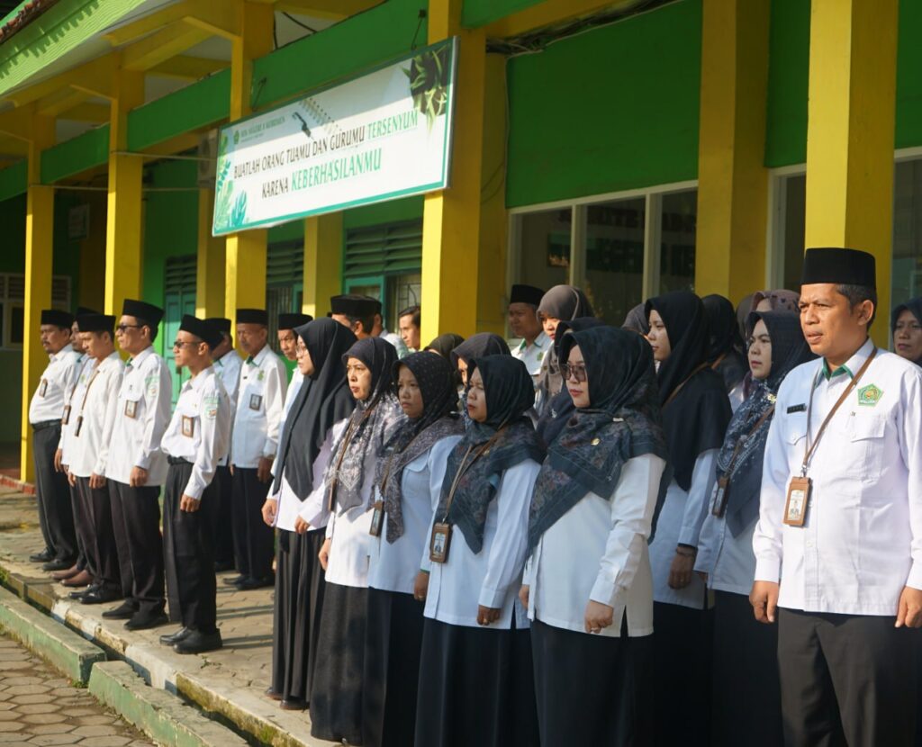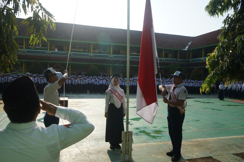 Kebumen, 6 Oktober 2025 — Semangat kebangsaan tampak menggelora di halaman MTsN 8 Kebumen. Udara yang sejuk dan langit cerah menambah khidmat suasana upacara pengibaran bendera merah putih yang digelar dengan tertib dan penuh makna. Para murid berdiri tegak dalam barisan rapi, sementara para guru dan karyawan turut berdiri di sisi lapangan dengan wajah penuh kebanggaan. Ketika lagu Indonesia Raya berkumandang merdu dan mengalun indah, seluruh peserta upacara larut dalam suasana haru dan hormat kepada Sang Saka Merah Putih.